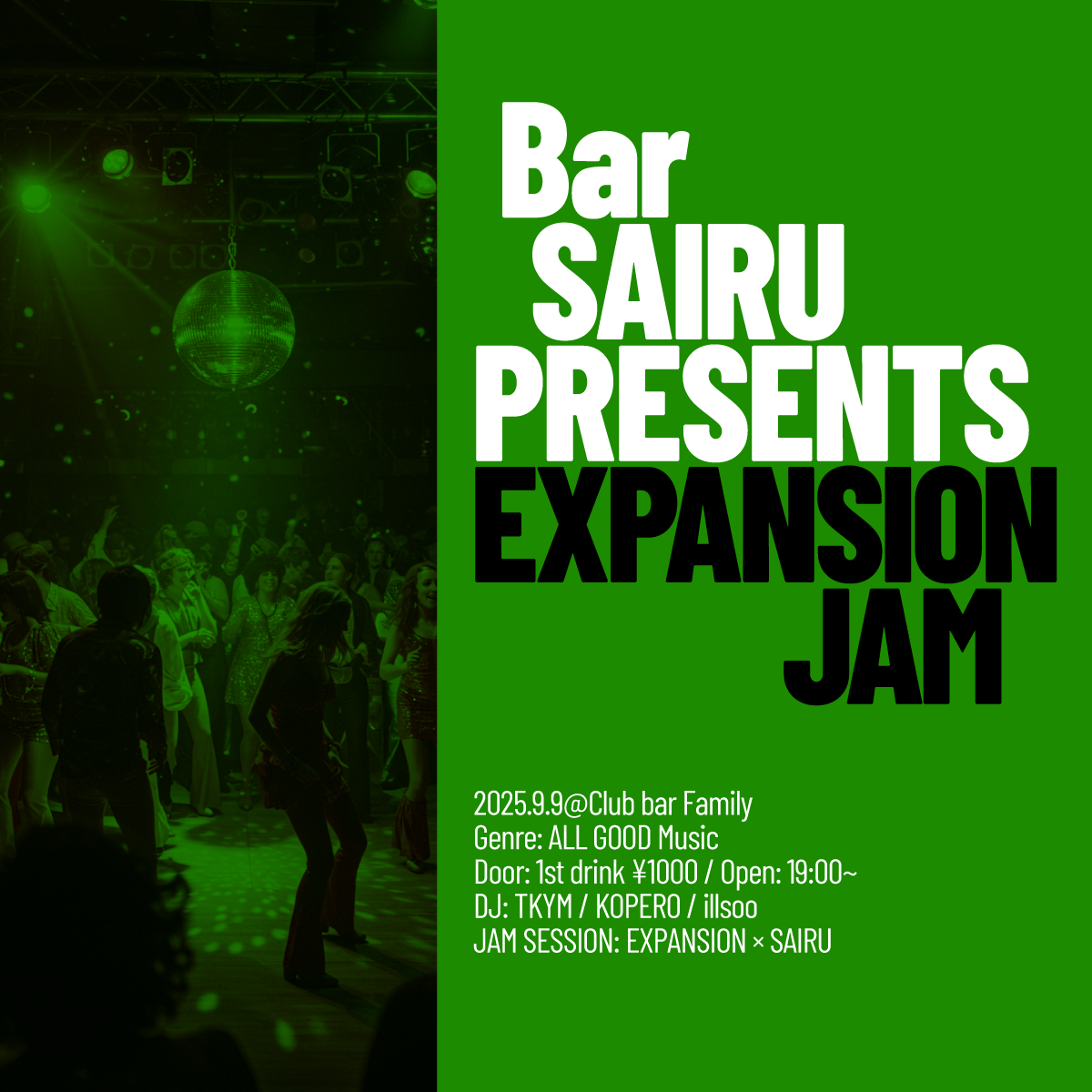 奇数月は、小林 "Bobsan" 直一と数井 塁のファンク・コミュニティ"EXPANSION"がホスト務めるFUNKなセッションありバージョンの月になります!今回もEXPANSION × SAIRUでのLive Sessionを中心にお送りします!しかも今月はドラムのルイさんバースデーSPです!!!!
