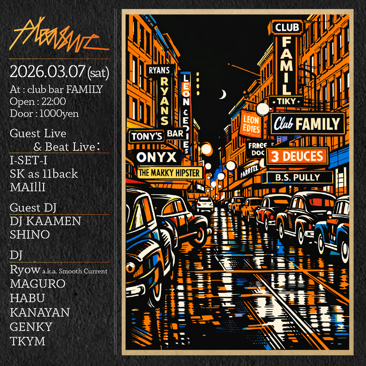 03.07 (sat):Event style:22:00 Open!!