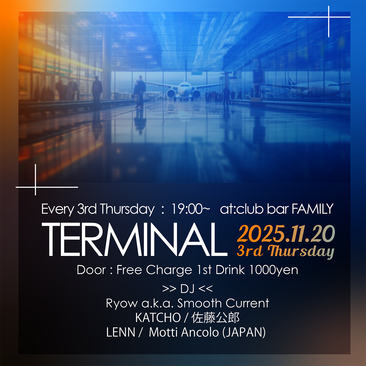 DJ Ryow a.k.a smooth current が仕掛けるFAMILYラウンジスタイル【TERMINAL】が毎月第3木曜日で再始動!!