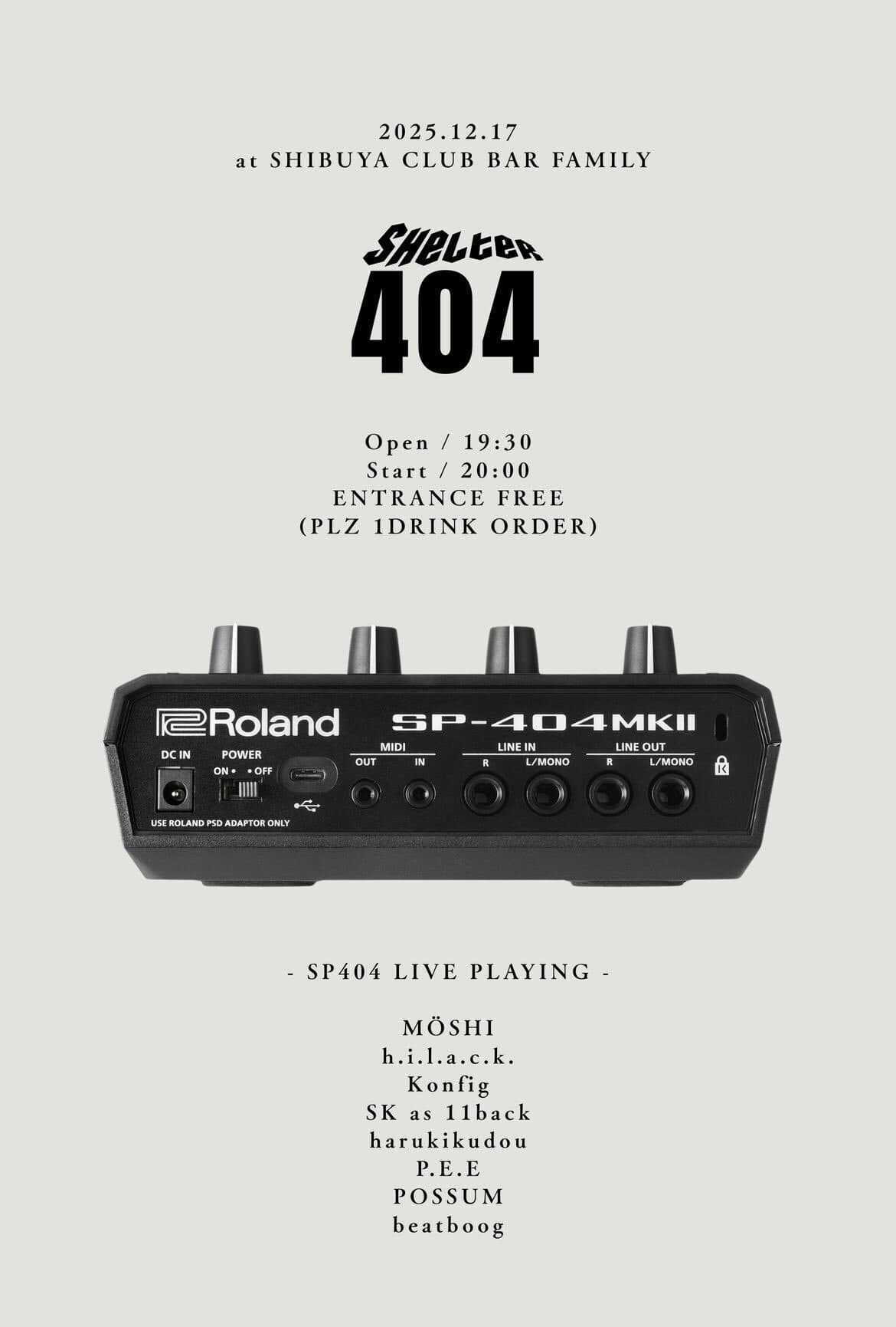 12.17 (wed):Event style:19:30 Open!!