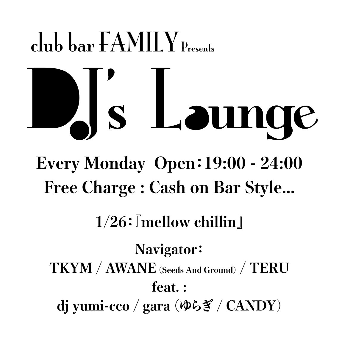 毎週月曜日、FAMILYの新しい提案として始めたラウンジスタイル『DJ’s Lounge』